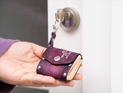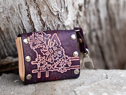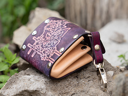 Featuring detailed hand-tooled artwork, this mini wallet combines artistry with functionality. The secure snap closure keeps your coins, folded cash, or small essentials safe, while the attached keychain makes it perfect for everyday carry.