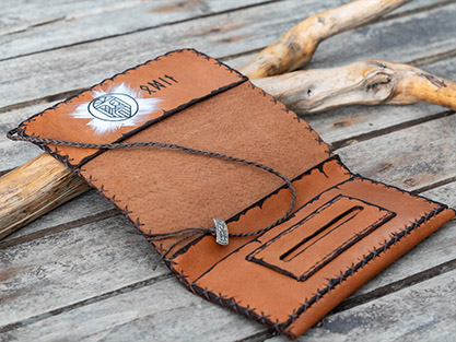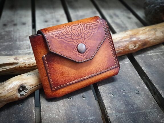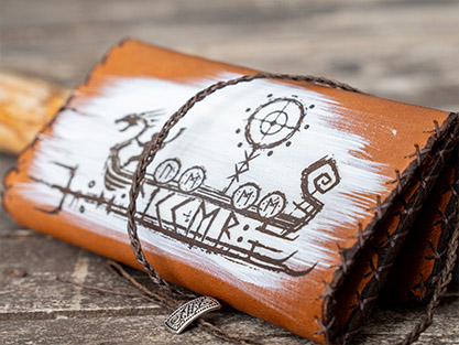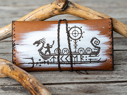 Inspired by Viking and Norse design elements, this leather tobacco wallet is a unique accessory for smokers who appreciate handmade craftsmanship.